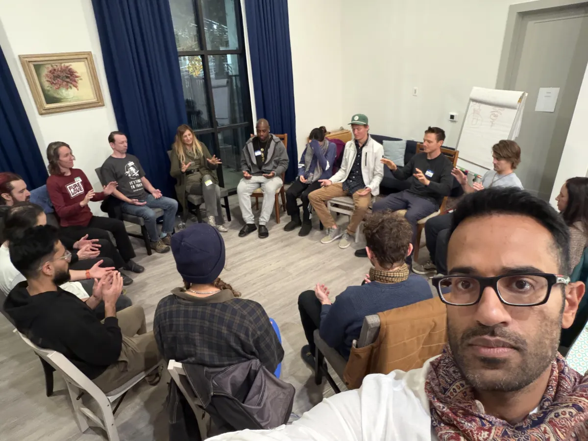 We close with community sharing, where members offer their unique gifts—whether it's a skill, practice, or insight—for others to experience and learn from.